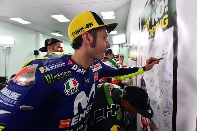 Les pilotes, de façon symbolique ont matérialisé sur un tableau leur mobilisation. Une belle unité qui s’est consumée lorsque Cal Crutchlow est arrivé et s’est exprimé sur crash.net : « si vous croyez qu’il y a des gens ici, dans le sport majeur de la moto, qui n’essaient pas de transgresser ces règles, alors vous êtes un idiot ». Et il termine : « je pense que la façon dont tout le championnat gère cette question n’est pas bonne. Mais ce que je dis là, je le répète depuis quatre ans déjà ».