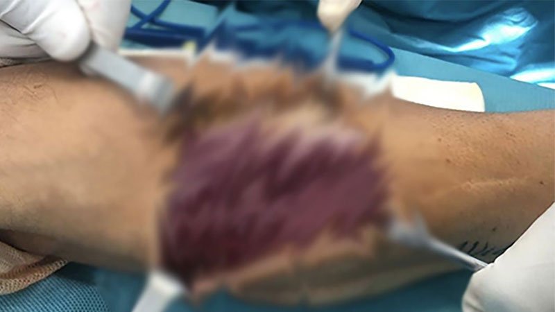 Ci-dessous, la seule image supportable, une fois la peau refermée.