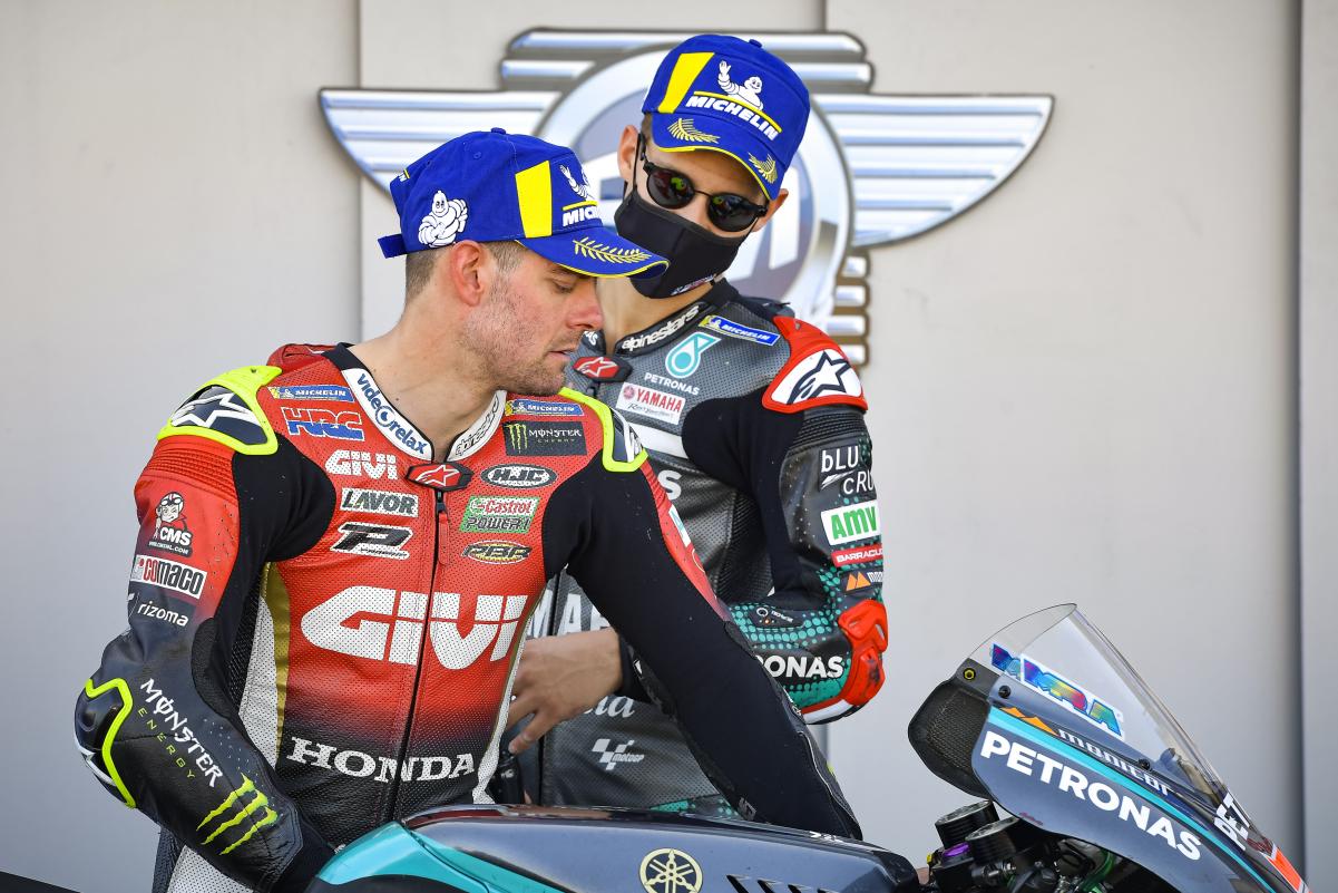 Fabio Quartararo et Maverick Viñales applaudissent l'arrivée de Cal Crutchlow mais pour des raisons différentes...