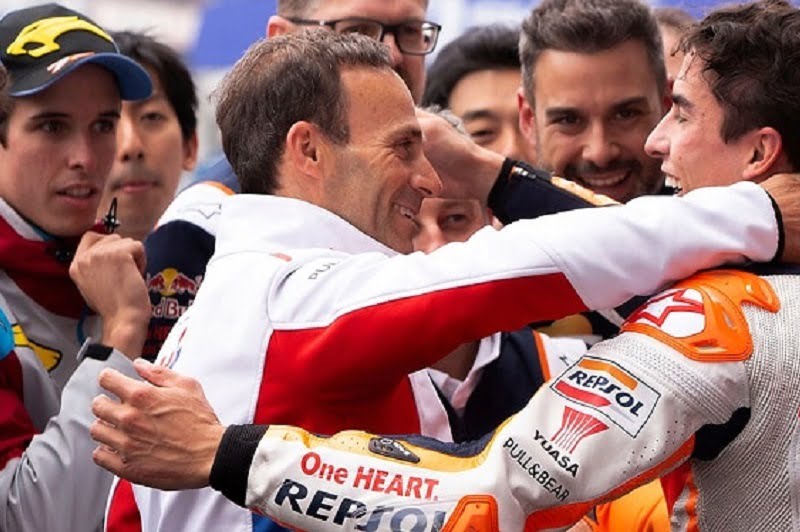 Les intenses moments de bonheur qu’ont vécus ensemble Marc Márquez et son team manager Alberto Puig ne sont peut-être pas près de se renouveler, comme semble le redouter sur la photo ci-dessus Álex Márquez (tout à gauche). Carlo Pernat en est persuadé, fort de sa grande expérience de directeur d’équipes, puis de manager personnel de pilotes.