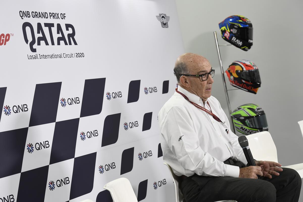 « Bien sûr, comme je l’ai dit lors de la conférence de presse au Qatar, notre volonté est de continuer le championnat avec toutes ses courses. Ceci est notre objectif, mais comme c’est quelque chose d’imprévisible, nous suivons la situation avec tous les gouvernements et en particulier avec les promoteurs. Nous sommes en contact très étroit avec la FIM, avec l’IRTA, avec les teams et bien sûr avec les promoteurs, et nous essayons pour le moment de gérer les choses en contact très étroit avec eux. »