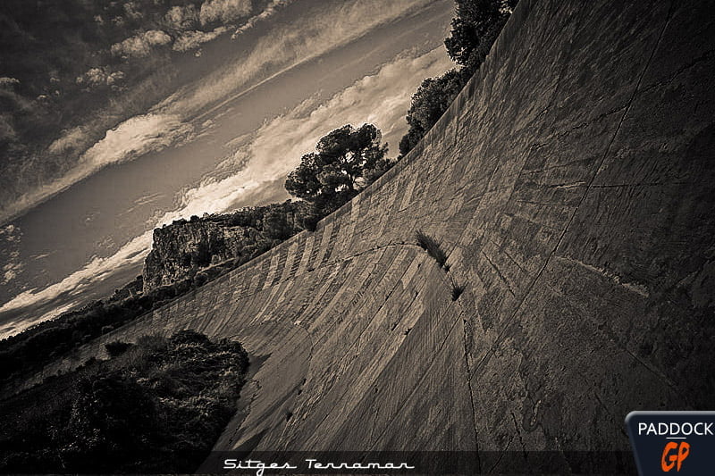 Si ce dernier peut encore évoquer quelques belles passes d’armes pour les plus anciens d’entre vous, rares sont ceux qui soupçonnent l’existence du spectaculaire tracé de Sitges Terramar, une sorte de Monthléry espagnol dont les prémices remontent en 1922 mais qui, malheureusement, sera loin de connaître le succès escompté. Certes, ce n’est pas tout jeune, mais sans vous infliger aujourd’hui l’historique complet de ces installations (voir ici) qui datent d’une époque où se doter d’un autodrome était alors un signe de prospérité et de modernisme, sachez simplement que vous pouvez encore le parcourir à pieds et vous imprégner des lieux.