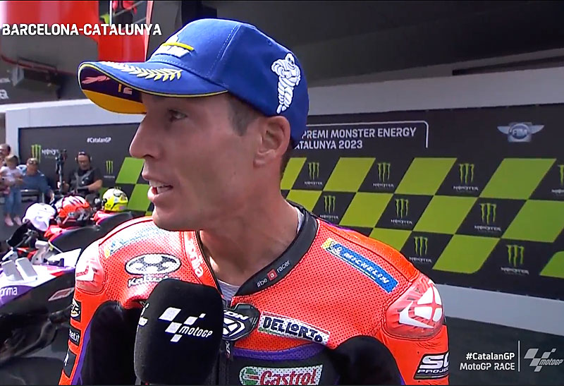 A peine descendu de son Aprilia RS-GP officielle après avoir remporté le Grand Prix MotoGP de Catalogne à Barcelone, Aleix Espargaro s’est confié devant les caméras du site officiel MotoGP.com avec la joie d’avoir fait le doublé et d’effacer ainsi sa bourde de l’année dernière, tout en ayant une noble pensée pour Francesco Bagnaia…
