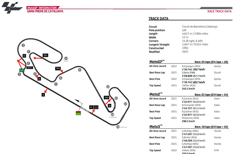 Sauf peut-être samedi pour le Sprint, les prévisions météorologiques nous promettent du beau temps lors des essais et d’un Grand Prix qui se disputera sur 24 tours, peut-être plus rapides que le record du meilleur tour en course détenu par Johann Zarco en 1’39.939.