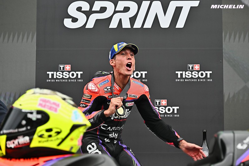 Aleix, vous avez fait un travail remarquable ! Votre première médaille d’or, le premier Tissot Sprint pour Aprilia, un grand vendredi hier. Nous disons « home sweet home », alors quel effet cela fait-il de remporter cette victoire au Sprint devant votre public aujourd’hui ?
