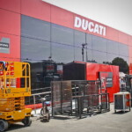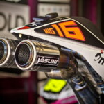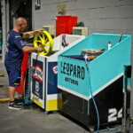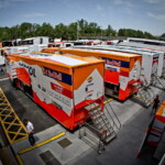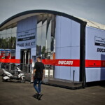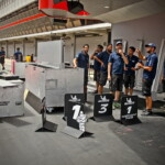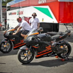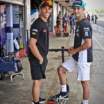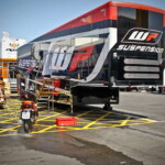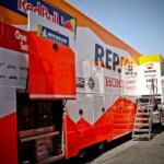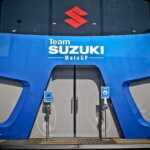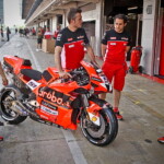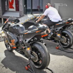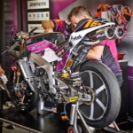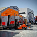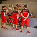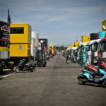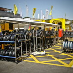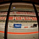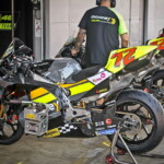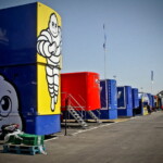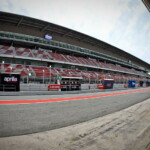 On est à ce moment charnière où la cohue de l’installation des hospitalités a quasiment cessé et où pilotes et journalistes sont encore en train de se diriger vers le circuit. Dans les box, on termine les motos, le plus souvent volets roulants baissés. Les tribunes sont bien entendu vides et l’endroit le plus animé de la pit lane, quasiment déserte, est le contrôle technique.