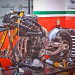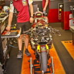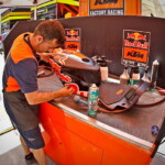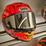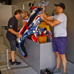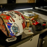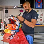 Tout cela va rapidement se transformer en une fourmilière qui grossira au fil des jours mais, en attendant, certaines images saisies par l’objectif de notre photographe Christian Bourget sont assez poignantes, comme les jantes de Marc Marquez sans pneus ou son casque posé sur une étagère du Racing Service Shoei…