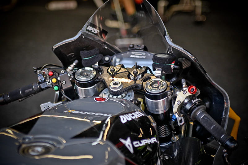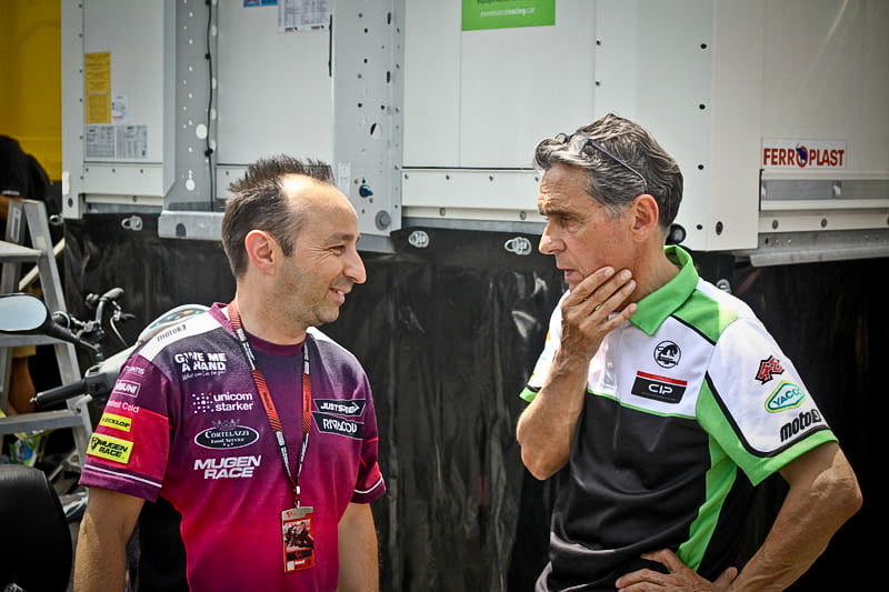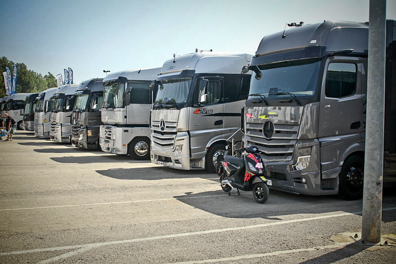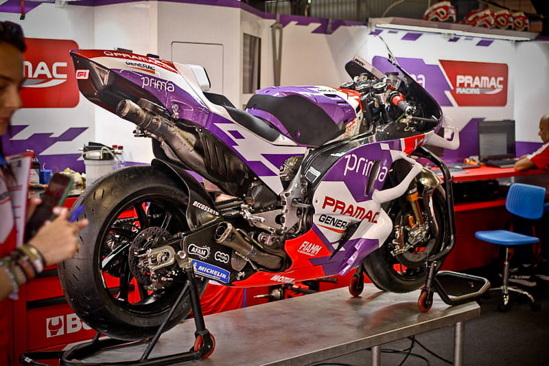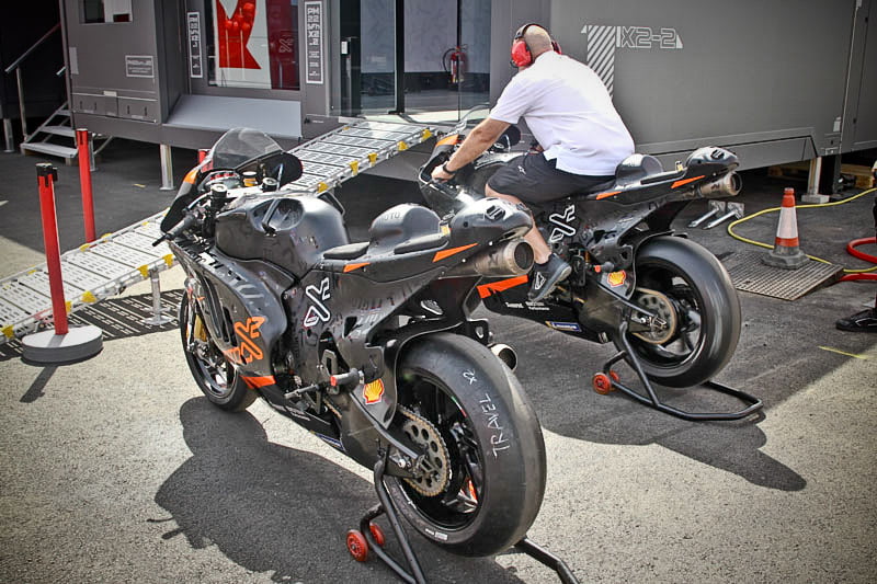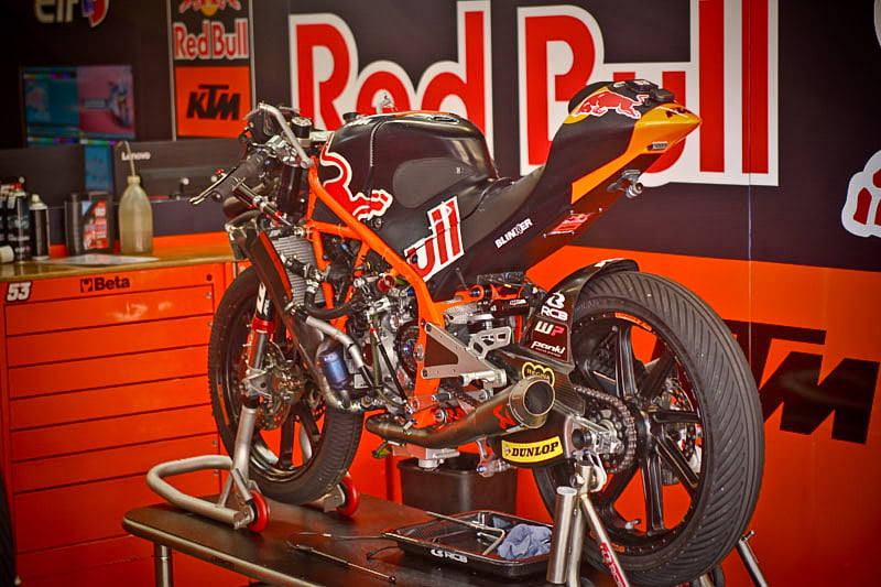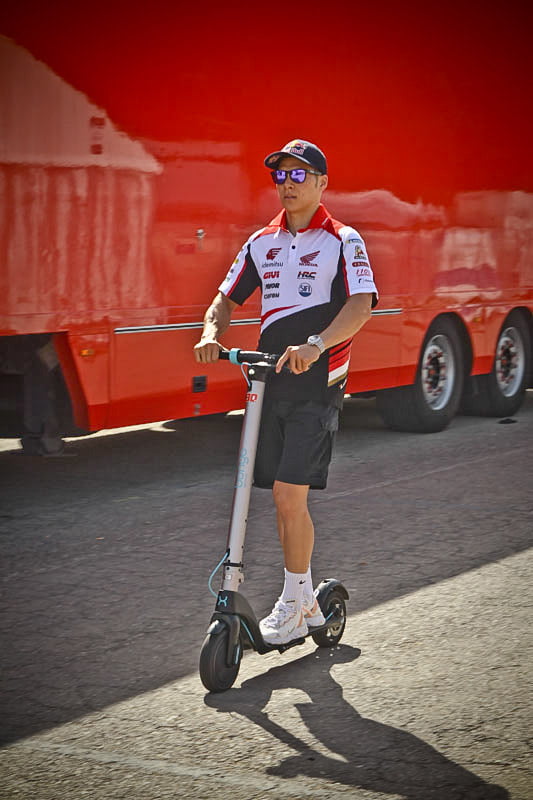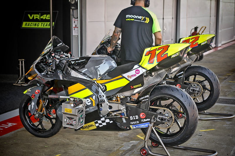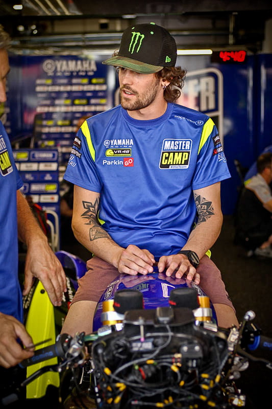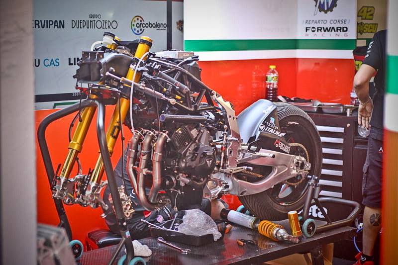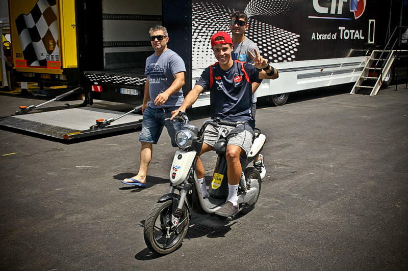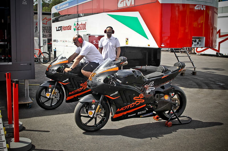 On est à ce moment charnière où la cohue de l’installation des hospitalités a quasiment cessé et où pilotes et journalistes sont encore en train de se diriger vers le circuit. Dans les box, on termine les motos, le plus souvent volets roulants baissés. Les tribunes sont bien entendu vides et l’endroit le plus animé de la pit lane, quasiment déserte, est le contrôle technique.