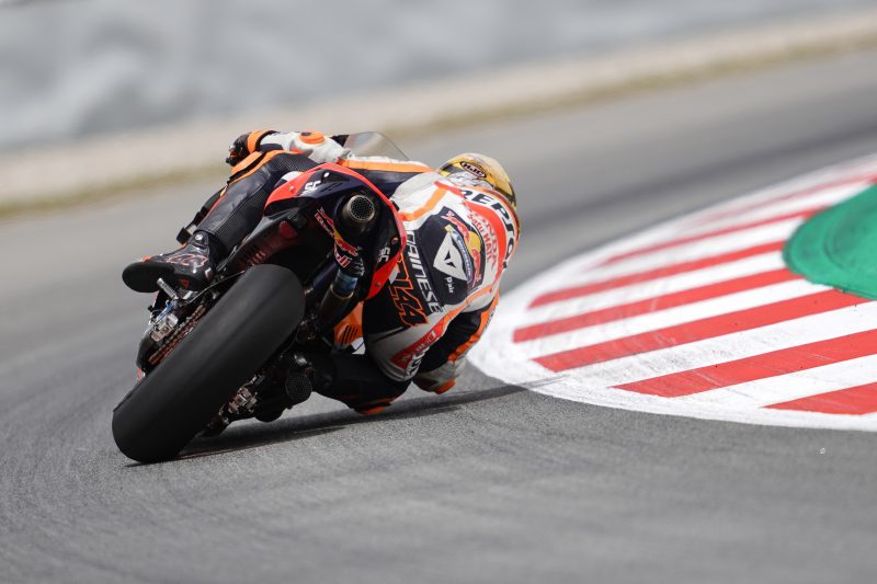Pol Espargaró, qui porte ce soir le flambeau de Honda lors du Grand prix de Catalogne, explique : « C’est une journée étrange, honnêtement parlant. Le circuit de Catalunya n’est normalement pas un circuit extraordinaire pour moi. Ce n’est pas parce que j’ai grandi ici dans cette région que je suis rapide ici. Ce n’est pas un lieu idéal pour moi, car comme la température de l’asphalte est généralement très élevée ici, alors que le niveau d’adhérence est très faible, vous devez rouler de manière très fluide. Mais je ne suis pas le genre de pilote qui conduit en douceur et avec beaucoup de vitesse dans les virages. C’est pourquoi j’ai l’habitude de peiner ici.