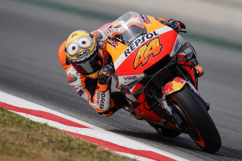 Pol Espargaró, qui porte ce soir le flambeau de Honda lors du Grand prix de Catalogne, explique : « C’est une journée étrange, honnêtement parlant. Le circuit de Catalunya n’est normalement pas un circuit extraordinaire pour moi. Ce n’est pas parce que j’ai grandi ici dans cette région que je suis rapide ici. Ce n’est pas un lieu idéal pour moi, car comme la température de l’asphalte est généralement très élevée ici, alors que le niveau d’adhérence est très faible, vous devez rouler de manière très fluide. Mais je ne suis pas le genre de pilote qui conduit en douceur et avec beaucoup de vitesse dans les virages. C’est pourquoi j’ai l’habitude de peiner ici.