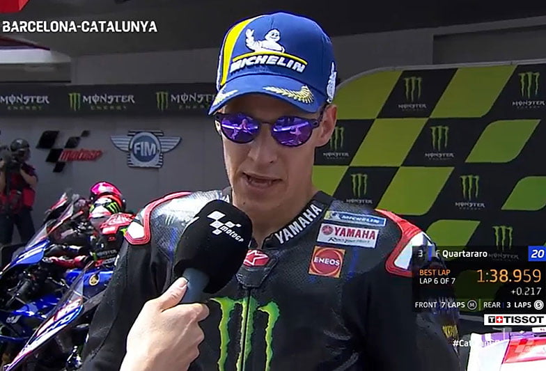 🗨️ @FabioQ20 : "Ça fait du bien d'être en 1ère ligne après un week-end très compliqué"#CatalanGP | #MotoGP