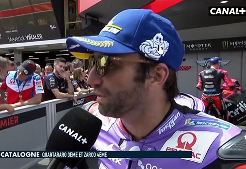 A peine descendu de sa Ducati GP22 du team satellite Prima Pramac Racing après avoir obtenu la 4e place sur la grille de départ du Grand Prix de Catalogne sur le circuit de Catakunya-Barcelona, Johann Zarco s’est confié devant la caméra de Canal+ avec une analyse sans concession malgré sa présence, une nouvelle fois, dans le parc fermé en tant que premier pilote indépendant…