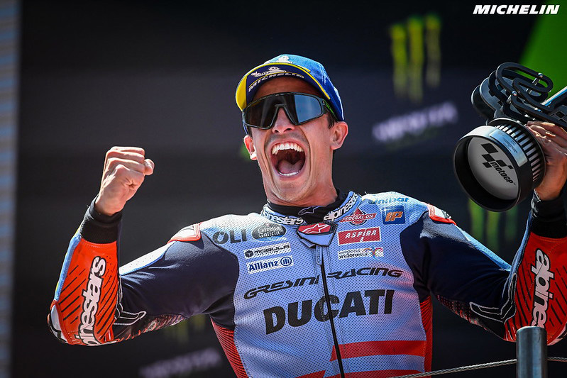 Si le scénario se répète, il n’en reste pas moins extraordinaire, Marc Marquez parvenant à rallier le podium malgré une très médiocre place sur la grille de départ. Et cela ravit le pilote Gresini, tout en lui permettant de figurer aux avant-postes du classement général…