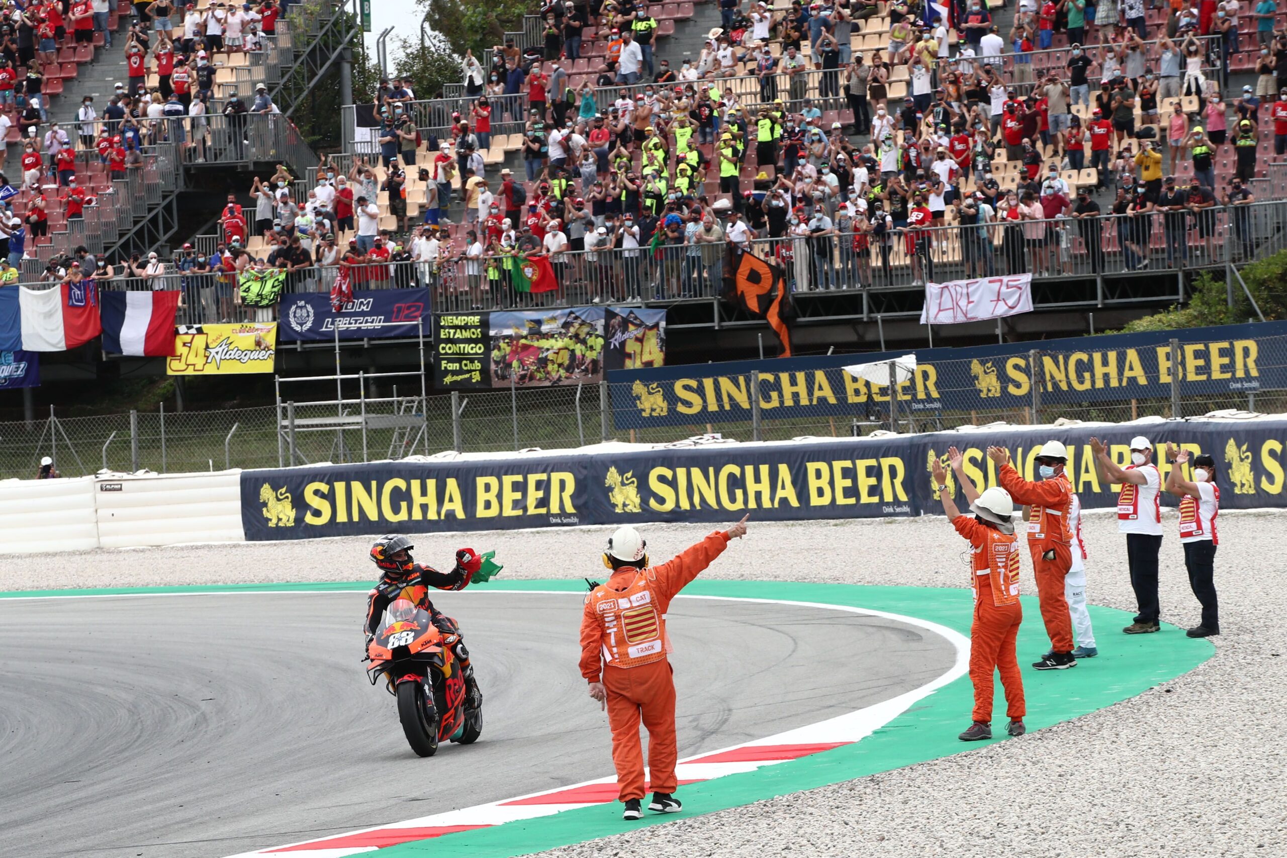 Et de trois ! Miguel Oliveira compte à présent trois succès en MotoGP et il a fêté en Catalogne, ce dimanche, sa première réalisation de la saison. Une victoire dont il se souviendra, et voici pourquoi : « c’était très difficile de tout gérer. Le grip, la pression… peut-être que cette victoire était meilleure que les autres car à Portimao ou Spielberg c’était plus naturel, plus fluide qu’ici ».