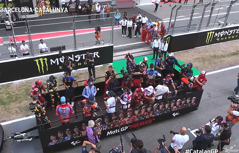 La parade des pilotes MotoGP a su faire sa place dans le programme du week-end en devenant une tradition qui satisfait à la fois les spectateurs présents, aujourd’hui sur le circuit de Barcelona-Catalunya pour le Grand Prix de Catalogne, mais aussi les pilotes pour qui il s’agit du seul moment où ils peuvent communiquer tous ensemble.