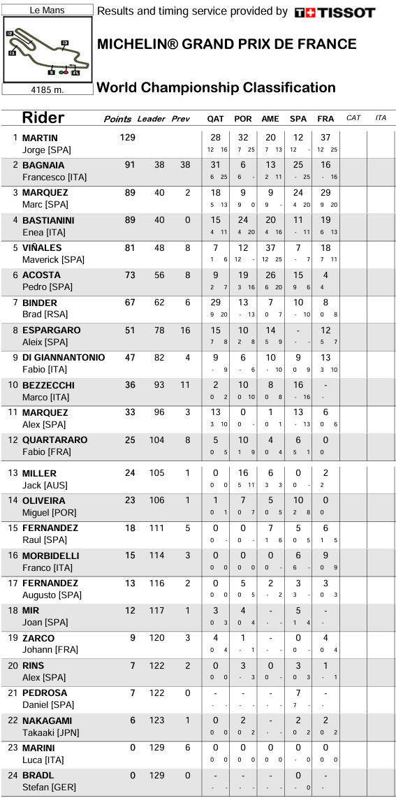 Crédit classement : Motogp.com
