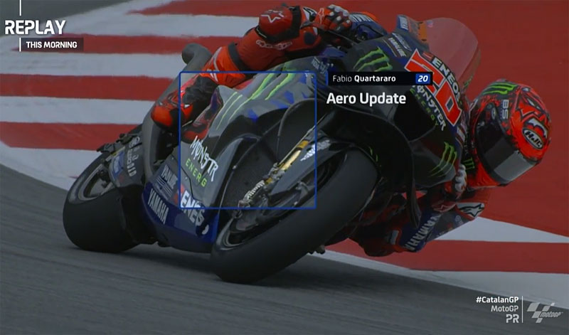 Deux minutes plus tard, Fabio Quartararo, qui utilise sa nouvelle aérodynamique, fait de même au virage 5, mais se relève tout de suite une belle cabriole.