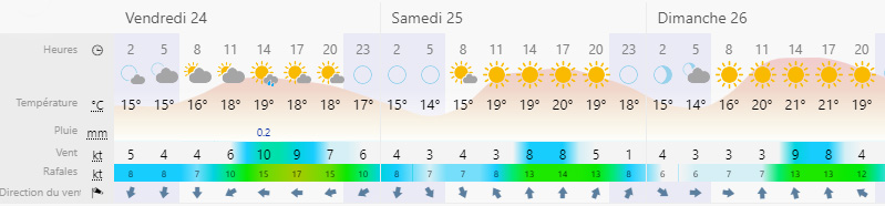 Côté météo, on attend du grand bleu pour samedi et dimanche, après quelques petits nuages épisodiques le vendredi. Les débats auront lieu sur le sec !