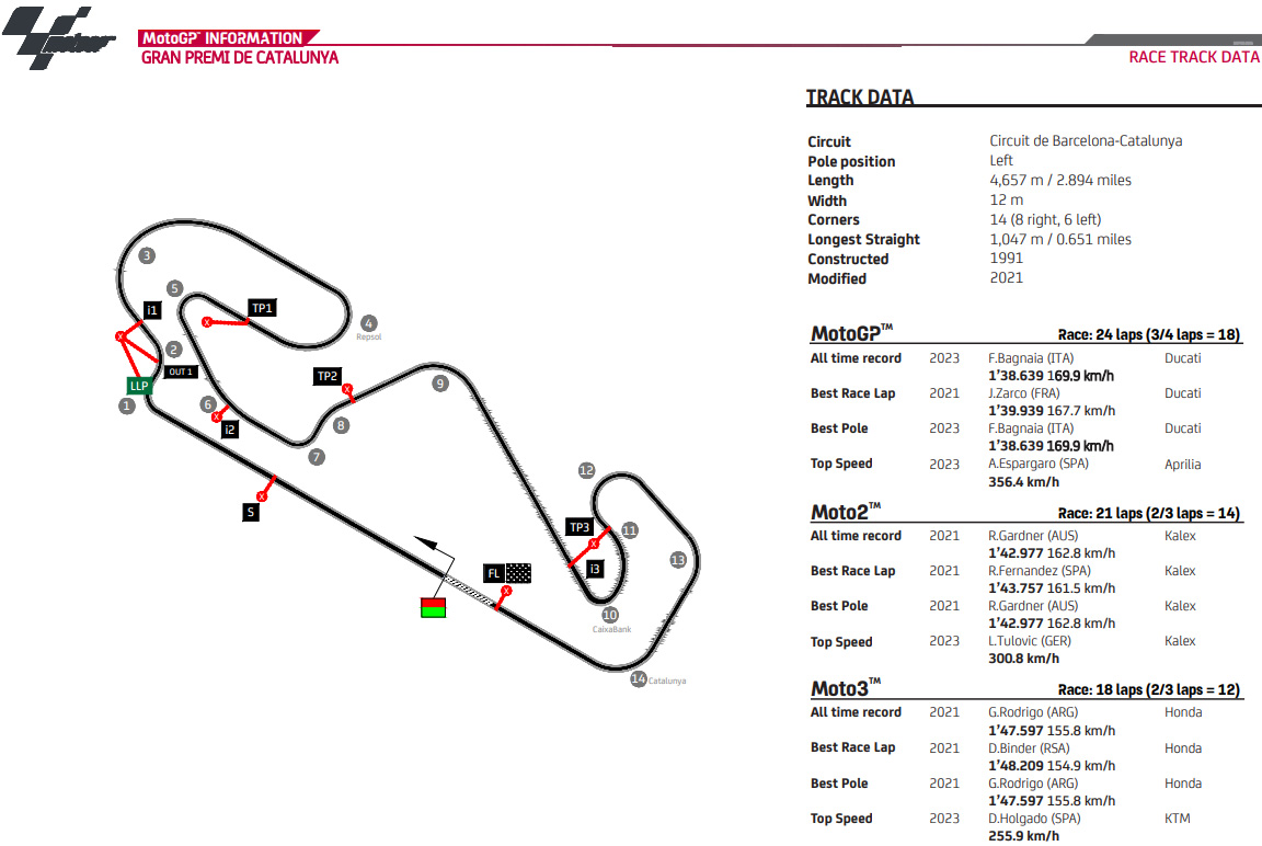 Mais pour écrire le sixième chapitre de cette saison MotoGP 2024, il faudra parcourir 12 fois le tracé de 4657 mètres lors du Sprint de samedi et effectuer 24 boucles le dimanche, sur une piste devenue très peu adhérente au fil des ans, rendant quelque peu caduques les statistiques historiques afférentes au