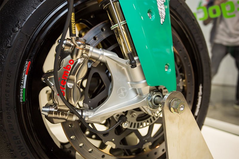 En plus de fournir des étriers à tous les pilotes de MotoGP, Moto2 et Moto3, Brembo fournit le système de freinage des 18 motos Energica Ego Corsa présentes sur la piste ce week-end pour la troisième manche de la Coupe du Monde MotoE. Elles sont toutes équipées d’un étrier avant monobloc réalisé par usinage avec des pistons de différents diamètres en titane.
