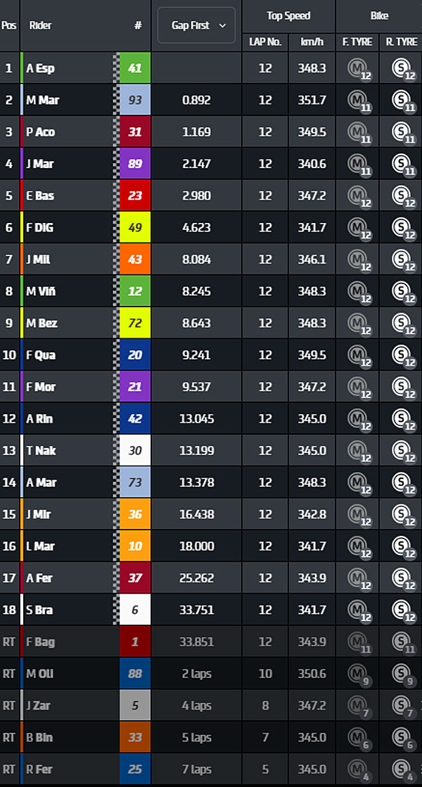 MotoGP, Catalogne Course Sprint : classement