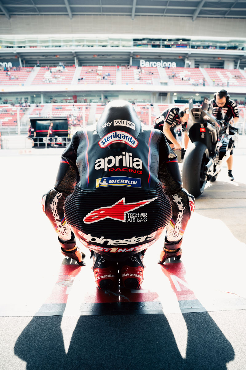 Le Madrilène, encore en phase d’adaptation à la RS-GP25, a encore besoin d’aligner les kilomètres pour augmenter son capital confiance et, malgré des essais privés réalisés par le test team de Noale il y a deux semaines, toutes les RS-GP ont mis un certain à trouver les bons réglages sur la piste catalane glissante.