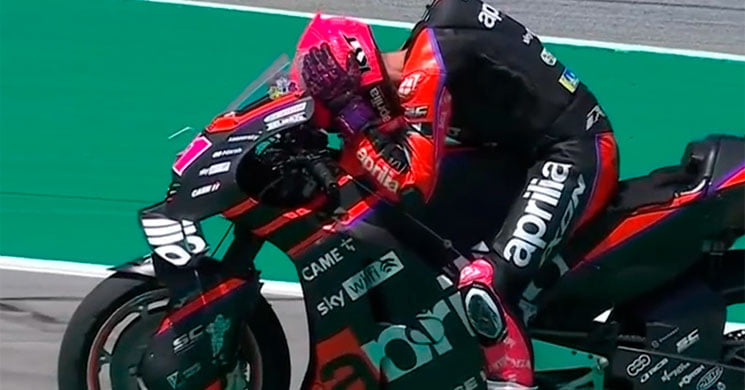 Aleix Espargaró avait tout fait bien jusque-là dans ce Grand Prix de Catalogne qu’il avait dédié à une association qui était venue en aide en son temps à sa petite fille en souffrance. Et elle pouvait être fière de son papa sur l’Aprilia qui a dominé les séances d’essais, s’est bien tenu lors des qualifications avant de se montrer solide en course. Hélas, on a été trop pressé de se retrouver en famille à Montmèlo puisque le second du championnat a stoppé son effort un tour avant l’arrivée. Une bévue qui le suivra pour toujours et qui lui coûte cher au championnat malgré une cinquième place sauvée, alors qu’il aurait dû finir second. De retour à son stand, Aleix Espargaró était anéanti…