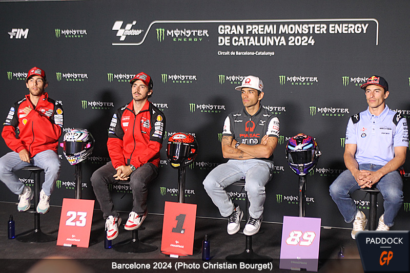 Les quatre hommes, en tête du classement général, ont été conviés à la conférence de presse ouvrant le week-end de course, et interrogé sur le sujet, après que patron Gigi Dall’Igna ait déclaré au Mans, suite aux victoires de Jorge Martin et aux 2e place de Marc Marquez en terre de France : « C’est sûr que c’est (maintenant) plus difficile. Mais vous savez, c’est mon travail et je dois sélectionner le meilleur pilote possible pour notre équipe d’usine et aussi le meilleur pilote possible pour l’autre équipe Ducati. J’ai donc de quoi réfléchir pendant cette semaine. »