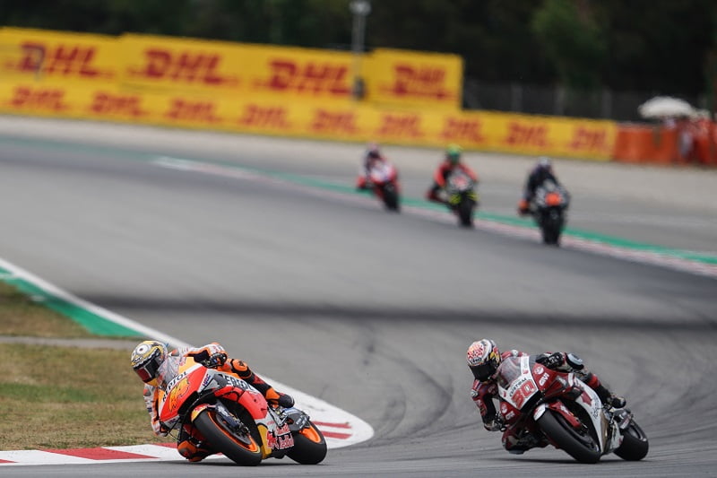 Nous sommes allés écouter (via un logiciel de téléconférence) les propos du pilote espagnol, qui n’a pas vu le drapeau à damier en raison d’une chute dès le quatrième tour, la seconde du weekend après celle survenue hier lors des qualifications. Au final, aucune des Repsol Honda n’aura vu la ligne d’arrivée à Montmeló.