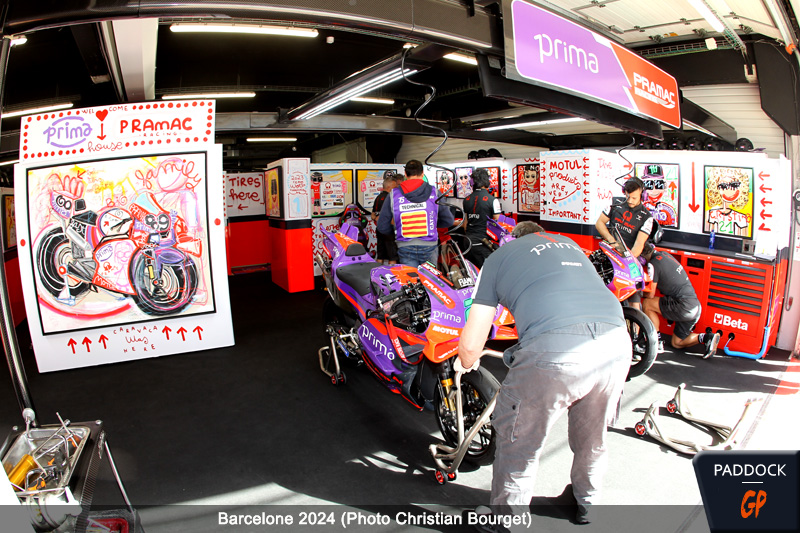 Grands Prix de Catalogne et d’Italie consécutifs, actualité du mercato MotoGP en pleine effervescence, un certain nombre de sujets secondaires n’ont pas pu être traités en temps et heure, mais bénéficient maintenant de cette première pause dans le calendrier pour être rappelés, comme c’est le cas ce matin avec la décoration spéciale du team Pramac en Espagne…
