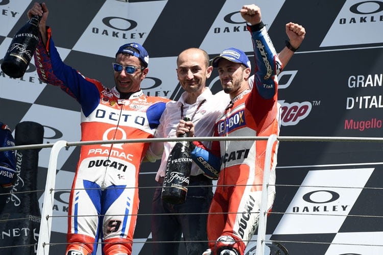 « Cela restera un regret. Entre Lorenzo et Ducati, tout a bien fonctionné trop tard. Nous devons nous tourner vers l’avenir avec un nouveau duo de pilotes ». Le patron de la marque poursuit : « il y aura plus d’harmonie et, j’en suis certain, plus de respect entre Andrea Dovizioso et Danilo Petrucci qu’entre le même Dovi et Lorenzo. Entre Jorge et Andrea, il y avait beaucoup de querelles. Je saisi que ce genre de chose fait partie du show. Mais peut-être que l’an passé, il y en a plus que ce que j’aurais souhaité ».