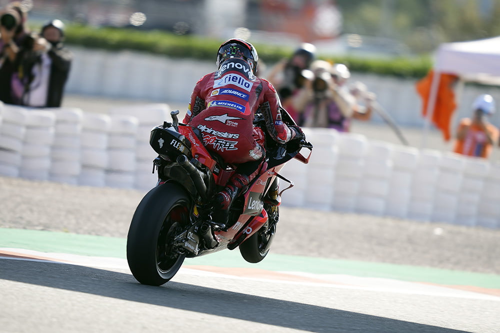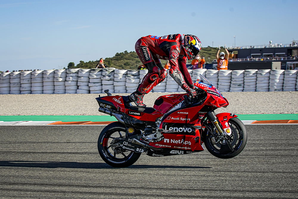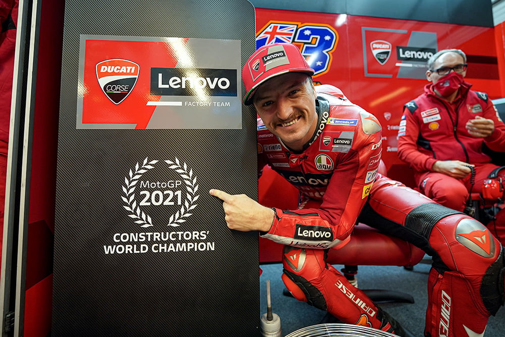 « Merci de dire que la Ducati est la meilleure moto. Je ne sais pas si c’est la meilleure moto mais c’est l’une des meilleures motos et nous en sommes fiers. Mais en termes de championnat, pour être honnête je pense qu’au début de la saison, quand nous avons décidé de faire monter Jack et Pecco dans le team Factory, nous l’avons fait après une deuxième partie de saison où Jack avait été super compétitif et Pecco avait peiné après une chute à Misano. Donc l’idée était évidemment de débuter avec Jack en tant que prétendant au championnat, et que Pecco se battrait pour le top cinq pour le voir progresser. Puis il a fait la pole position au Qatar et il s’est battu pour remporter cette course, et il a fait une deuxième partie de saison fantastique, alors que Jack a remporté sa première victoire sur une Ducati à Jerez, puis au Mans, mais après il y a eu un peu des hauts et des bas. Donc je pense qu’il y a eu quelques courses où nous avons perdu des points clefs qui auraient pu permettre de conserver la bagarre avec Fabio jusqu’à la dernière manche. Je dirais le Mugello, le deuxième départ en Autriche et Silverstone. Bien sûr, nous avons fait de belles choses mais nous avons perdu le championnat avec la chute à Misano, car c’était tout ou rien : Nous devions gagner et je pense que Pecco a fait une course fantastique d’autant que je pense qu’à ce moment Marc Márquez avait décidé qu’il serait heureux avec la deuxième place. Mais Pecco a commis une petite erreur et a chuté, et c’était fini. Mais nous sommes satisfaits et nous pensons que nous avons les pilotes en mesure de vraiment essayer de remporter le championnat l’année prochaine, et c’est ce que nous allons faire. »