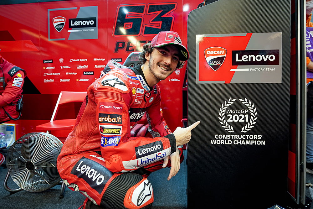 « Comme nous l’avons expliqué auparavant, durant ces deux années nous avons utilisé les mêmes spécifications moteur car il a été décidé l’année dernière de geler le développement des moteurs de 2020 à 2021. Je pense donc que maintenant la plupart des constructeurs introduisent comme nous des développements dans le domaine du moteur. Ce que nous avons appris sera utilisé l’année prochaine prochaine après cette saison victorieuse. Évidemment, quand vous avez une moto très compétitive, c’est toujours très difficile de faire mieux mais c’est évidemment le travail et l’objectif de nos ingénieurs qui, normalement, arrivent avec de belles idées qui rendent les motos un peu plus compétitives chaque année. »