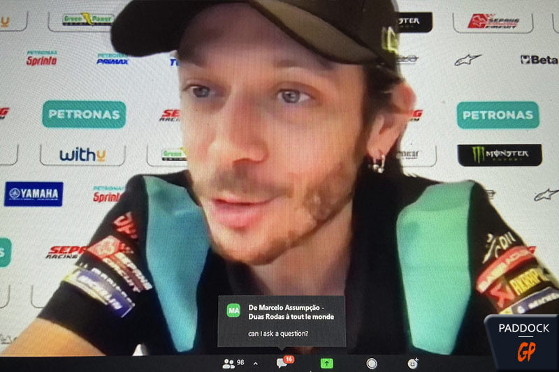 Cette année, dans la mesure du possible, c’est-à-dire si le planning des visioconférences le permet, nous avons décidé de suivre au plus près Valentino Rossi dans sa nouvelle aventure au sein de l’équipe Petronas SRT, comme nous le faisions donc déjà pour Johann Zarco (voir ici) et Fabio Quartararo (voir ici) lors des saisons précédentes.