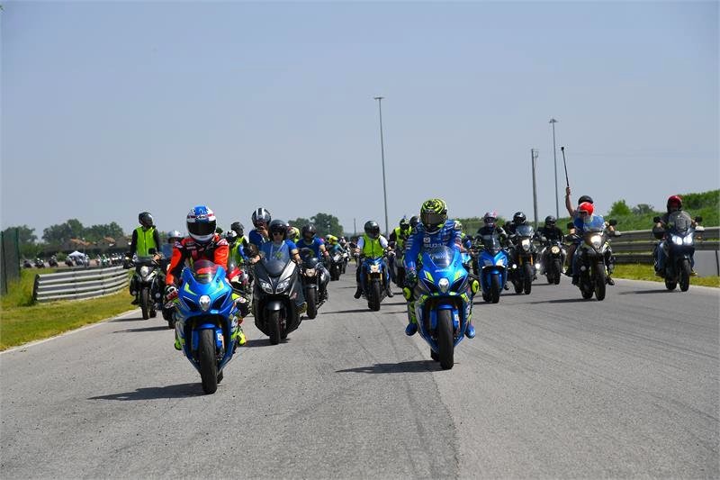 Mais le moment le plus important de l’événement a été lorsque le cortège de pilotes avec plus de 400 motos, mené par Iannone et Schwantz, a réalisé quelques tours sur le Circuit de Crémone, et terminé par une photo de groupe dans le S de Suzuki.