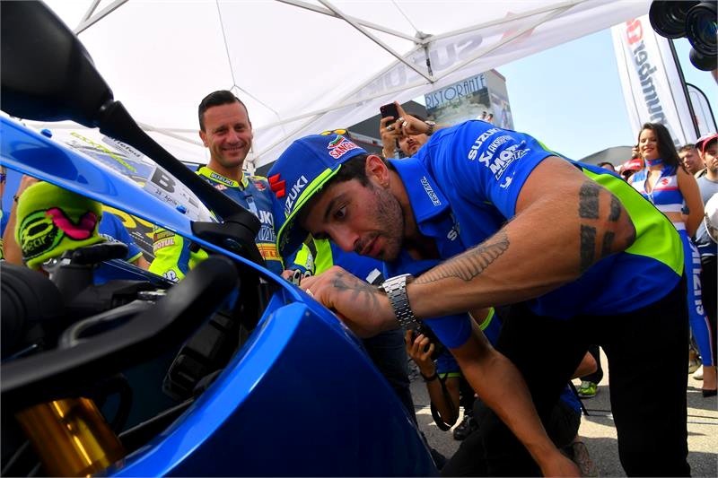 Andrea Iannone : « Je ne m’attendais pas à un événement aussi important en Italie et je dois dire que j’ai été surpris par l’affection que j’ai reçue à la Journée Suzuki à Crémone. Le paddock était plein de personnes qui pouvaient toutes trouver une activité à faire. Nous avons rencontré beaucoup de fans (je ne pourrais pas dire combien d’autographes j’ai signés), ce qui prouve une fois encore combien la marque Suzuki plaît aux gens. Les motos sont incroyables, nous avons roulé quelques tours sur le circuit avec plus de 400 personnes et j’ai été touché par l’affection que j’ai reçue. Ces événements sont importants pour moi car ils me font réaliser à quel point nous comptons pour les gens et à quel point ceux-ci comptent également pour nous. Lorsque nous sommes sur les Grand Prix, c’est plus compliqué de sentir la proximité des gens à cause de notre emploi du temps serré et de la concentration que nous devons avoir, alors lorsque vous assistez à un événement plus informel, vous pouvez vous détendre un peu et vraiment profiter de cette passion fantastique que sont les motos. »