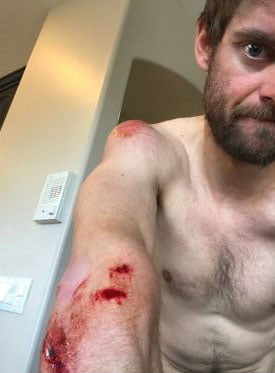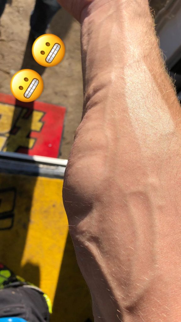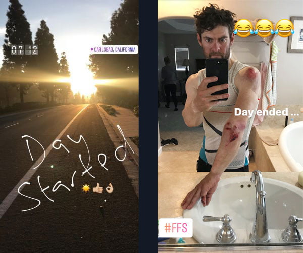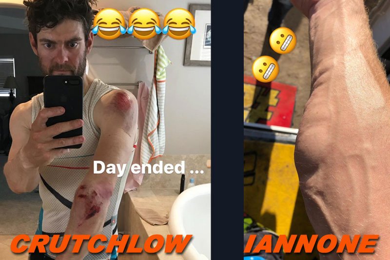 Cal Crutchlow s’entraînait en Californie avec le champion cycliste Mark Cavendish quand il a perdu le contrôle de son vélo. Le pilote LCR s’en sort avec quelques contusions sanguinolentes, mais on le sait dur au mal et il a résumé sa mésaventure avec son humour habituel sur Instagram Stories.
