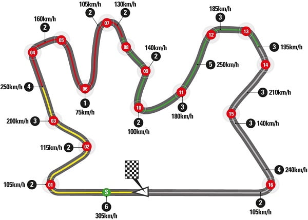 Sur les 14 chutes survenues lors de la course l’an dernier en MotoGP, cinq ont eu lieu dans le deuxième virage, deux dans les numéros 4, 10, 14 et 16, et une dans le 5e virage.