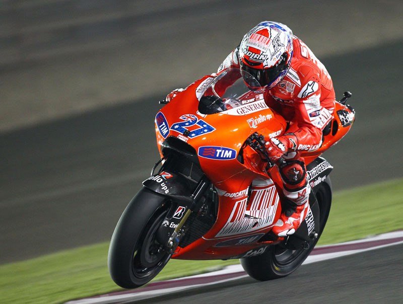 La longue ligne droite à Losail s’est transformée en un test pour les nouveaux moteurs, un test dans lequel la Ducati a été victorieuse à chaque fois. Peu importait l’endroit où elle sortait du dernier virage dans la ligne droite : en quelques mètres, la Desmosedici dépassait toutes ses rivales avec une incroyable démonstration de puissance. Ce jour-là, Stoner a remporté sa première course en MotoGP, commençant un parcours qui le mènera au titre de Champion du Monde.