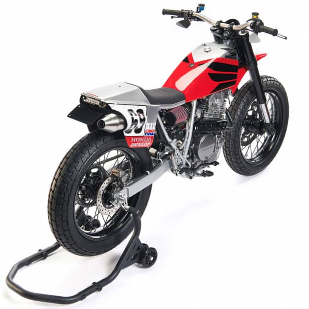 Le choix de la XR650L et sa préparation ont été confiés à Tony Prust d’Analog Motorcycles à Chicago. Et la préparation a été poussée, pour faire ressembler la Honda à une Harley-Davidson XR750 de Flat track, le tout avec une décoration évoquant sans nul doute possible celle de la RC51 avec laquelle Nicky hayden fut champion AMA en 2002 : réalisation d’un réservoir et d’un dosseret de selle en aluminium sur mesure, modification de la boucle arrière du cadre, etc.