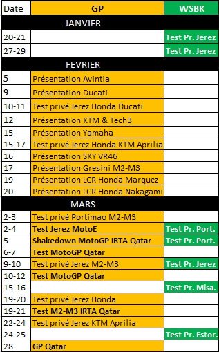 Ainsi, ce sera Álex Márquez qui dévoilera ses nouvelles couleurs le vendredi 19 février à midi, suivi de Takaaki Nakagami le lendemain à 10 heures, le tout sur les page Facebook concernées et venant incrémenter la liste suivante des événements à suivre avant le début de saison proprement dit: