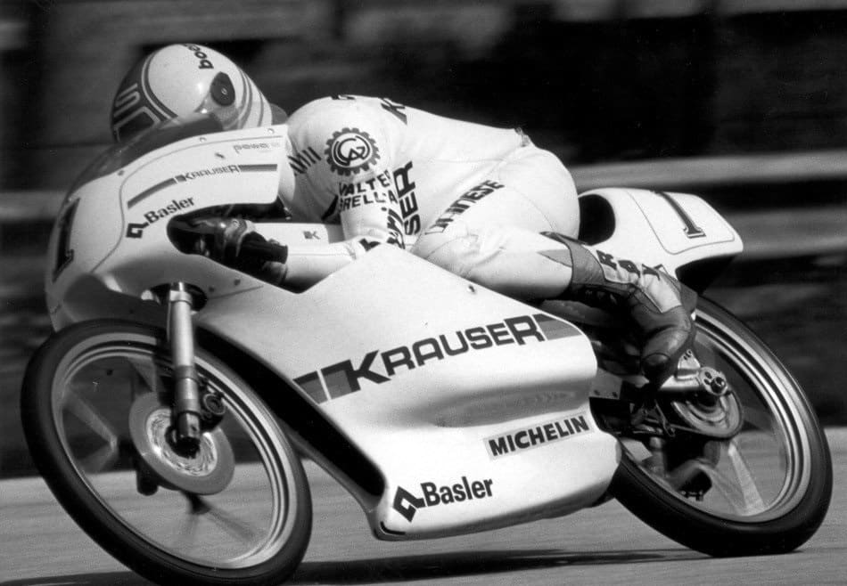Comme Dörflinger, Jorge Martinez, surnommé Aspar, a remporté quatre titres mondiaux. Dans la catégorie 80cc, Martinez fut même le successeur direct de Dörflinger en tant que champion, remportant le championnat de 1986 à 1988 trois fois de suite. En 1988, le pilote ibérique fait coup double, empochant en prime le titre de Champion du Monde 125cc, avec pas moins de neuf victoires au compteur… sur 11 courses disputées à l’époque. Cet Espagnol, aujourd’hui patron de team, aura finalement couru à travers les catégories 50cc, 80cc, 125cc et 250cc. Actif jusqu’en 1997, il aura cumulé l’équivalent de 37 succès.