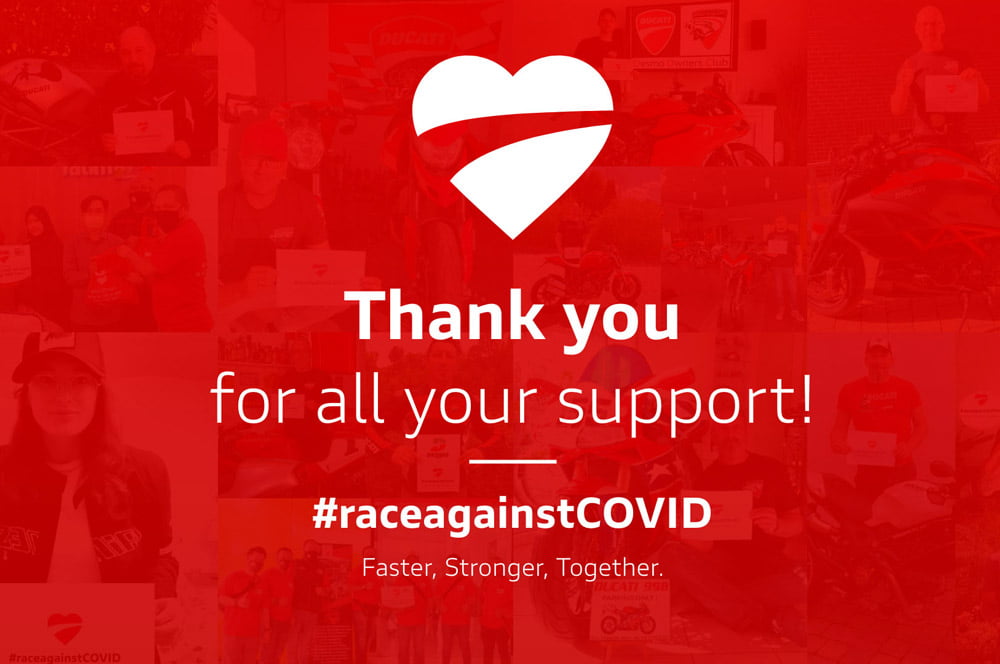 Avec #raceagainstCovid, la levée de fonds lancée début mai par Ducati a totalisé plus de 170 000 euros. Les dons sont destinés à financer les programmes de rééducation que la Polyclinique de S. Orsola de Bologne a développés et mis en œuvre pour les patients en convalescence après une infection à la Covid-19.