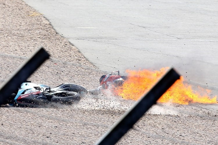 Andrea Dovizioso n’a pas eu de chance au départ du dernier Grand Prix de Grande Bretagne. Il n’a rien pu faire pour éviter la moto en perdition de Fabio Quartararo qui était déjà à terre. Sa Ducati a rencontré la Yamaha Petronas transformée en tremplin pour la moto rouge qui a décollé, éjecté son pilote avant de s’écraser au sol et de se consumer dans les flammes… Un violent accident dont DesmoDovi se remettra, même s’il le sentira passer ces prochains jours…