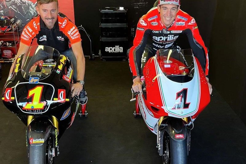 Max Biaggi a quant à lui repris le guidon de sa 250cc RS tandis que Andrea Iannone s’est fait plaisir sur une RSV4.
