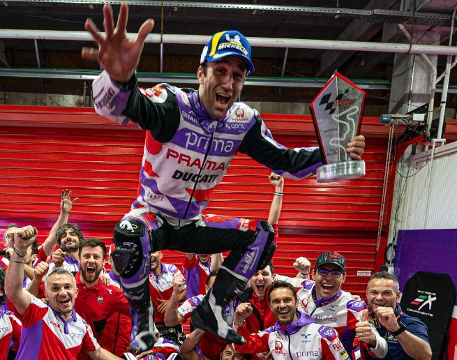 Âgé à présent de 33 ans, s’approchant des 250 Grands Prix en carrière, celui qui est aussi double Champion du Monde de Moto2 serait a priori assurer de garder sa place chez Pramac en 2024 avec une GP23 dans son box. Cependant, tant que rien n’a été décidé en ce qui concerne l’équipier de Bautista en WSBK, il y a toujours un doute qui plane sur les plans du tricolore en vue de l’an prochain.