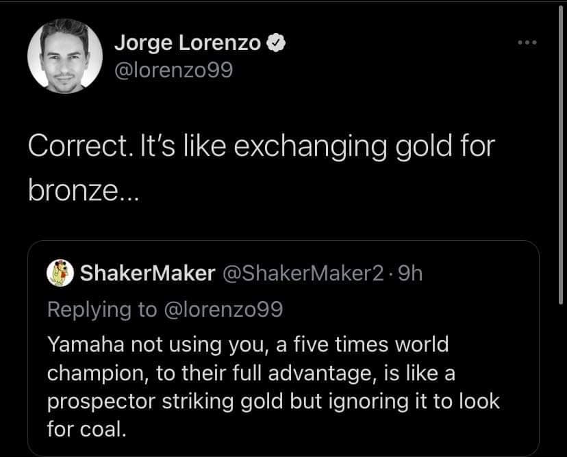 Une expertise qui a ainsi fait réagir Jorge Lorenzo sur son réseau social. Ambiance…