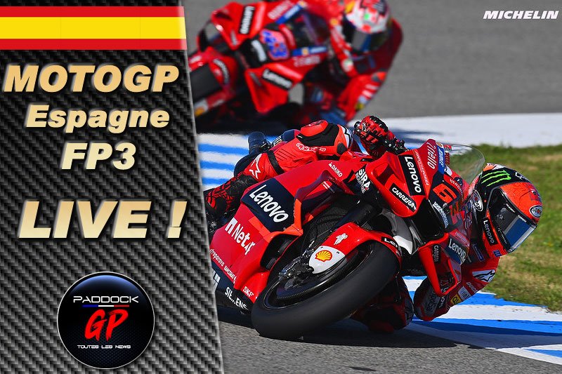 En attendant d’en découvrir davantage, au moment où les 25 pilotes se préparent pour cette troisième séance d’essais libres de 45 minutes, sous un ciel andalou limpide et avec des températures de 20° dans l’air et 23° au sol, profitons de ces quelques moments de direct grâce au site officiel MotoGP.com :
