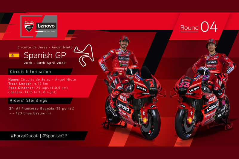 Le Championnat du Monde MotoGP 2023 fait sa quatrième étape à Jerez de la Frontera pour le Grand Prix d’Espagne, et le fer de lance de l’équipe Ducati Lenovo, Francesco Bagnaia, y est attendu au tournant. Doublement.