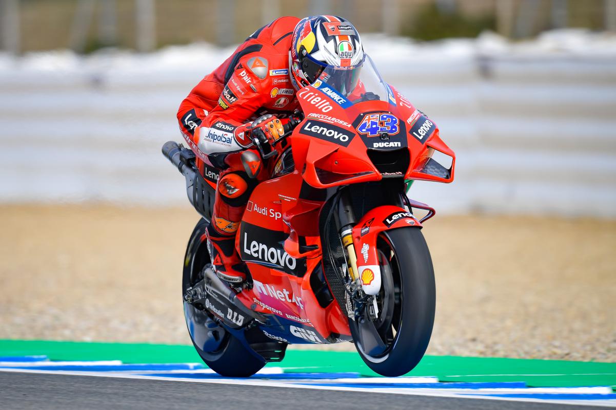 Pire, à Jerez la prestation de son équipier Bagnaia a tourné à la leçon : « au de vu ce que Pecco a fait et au regard de mes chronos, nous sommes similaires dans tous les secteurs » explique Jack. « Mais je suis incapable de faire rouler la moto comme lui, de la faire tourner comme lui. Pecco est également allé très vite l’an dernier en réussissant à rester en tête. J’ai tout perdu dans le dernier secteur, surtout dans les virages 11-12 et même dans le virage 2 je ne suis pas entré aussi vite que je le souhaitais, souffrant aussi un peu de sous-virage ».